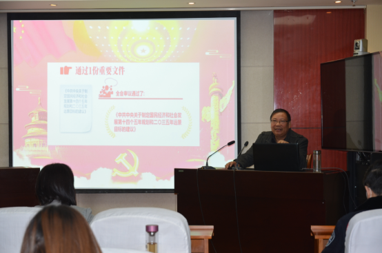 旦勇刚同志从党的十九届五中全会概况、内容解析和公报关键词三个方面进行了重点讲解,并就十九届五中全会名称的由来、九大远景目标、十二项重点举措、新提出的“全面建设社会主义现代化国家”等方面与大家交流学习,同时结合三总支各党支部的工作实际,要求大家在日常管理工作中求创新,以创新积极推进学校发展。