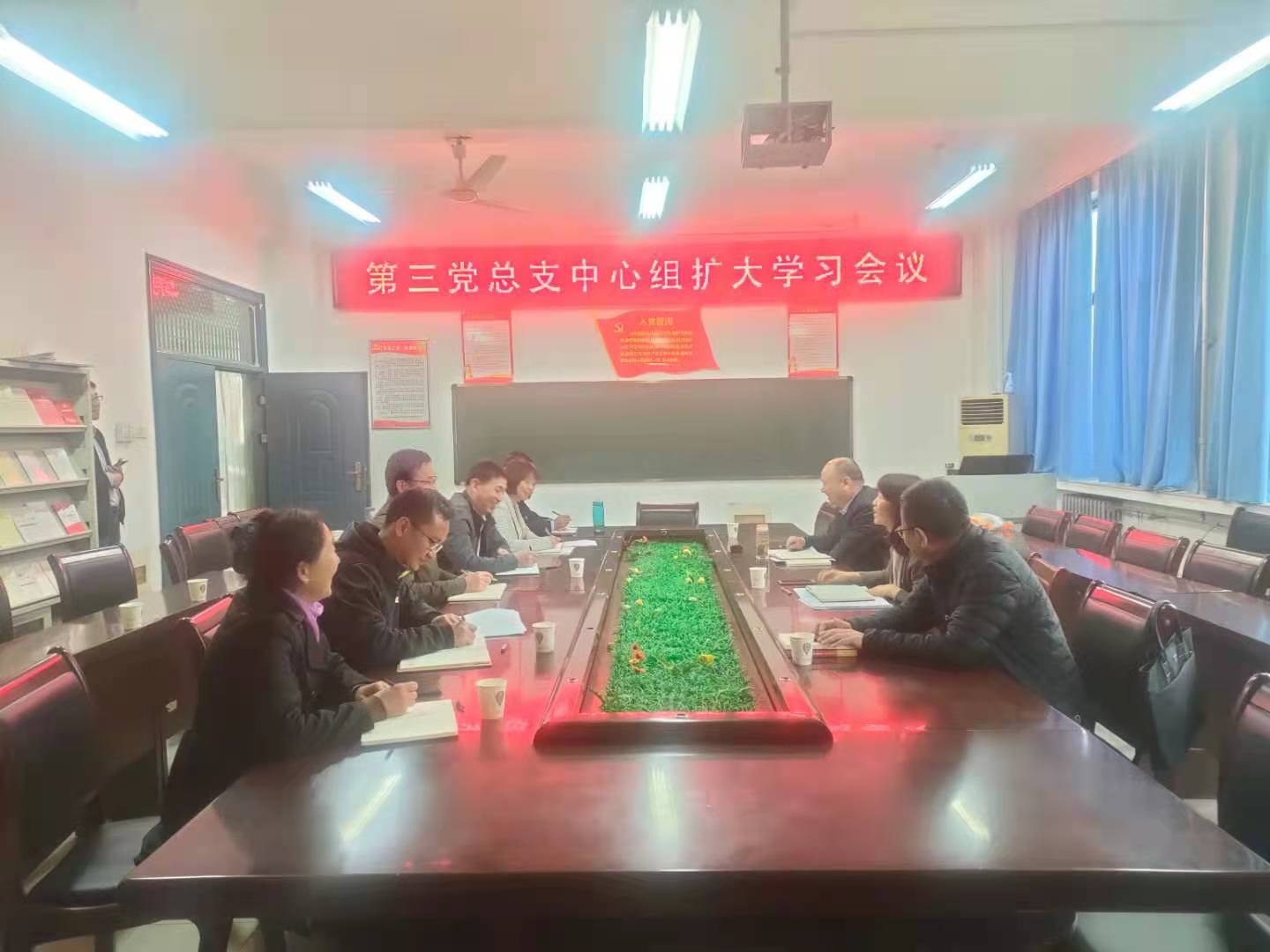 为推进党史学习教育走心走实、入脑入心,按照总支党史学习教育方案工作安排,4月23日下午,第三党总支在8#楼303会议室召开三总支中心组(扩大)党史学习教育集中专题学习会议,专题学习习近平《论中国共产党历史》《中国共产党统一战线工作条例》等内容。总支委员、各支部书记和党员代表参加会议。