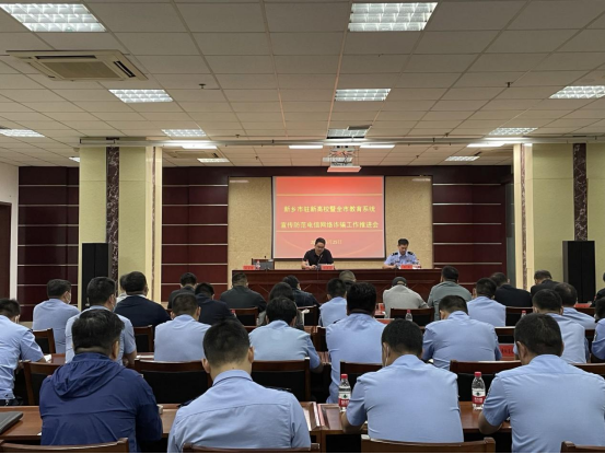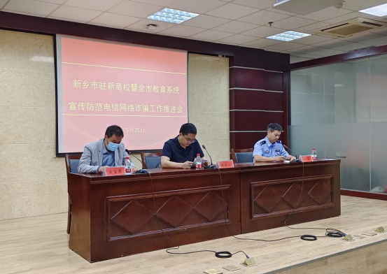为深入贯彻落实习近平总书记关于打击治理电信网络新型违法犯罪批示精神,有效遏制我市电信网络诈骗案件发案和我市在校学生参与涉诈“两卡”犯罪势头,全力做好驻新高校及全市教育系统电信网络诈骗犯罪的防范治理工作,5月25日上午,市平安办、联席办在我校组织召开驻新高校暨全市教育系统宣传防范电信网络诈骗工作推进会。