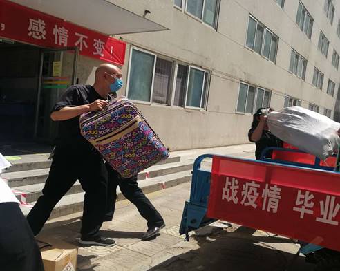 因防控新冠肺炎疫情,使得今年的毕业生离校工作与往年大不相同,按照上级和学校的规定,不允许家长进校陪送学生,这样给学生离校带来了诸多不便。为了让同学们感受到母校的温暖与关爱,保卫处、武装部党支部组建了一支党员志愿者服务队专门在校园帮助同学们装卸运送行礼,完成贴心服务最后一公里。