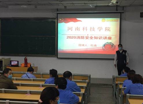 开学在即,为切实做好学生返校复学准备工作,创造一个安全有序的校园环境,保卫处在认真做好校园疫情防控工作的同时,始终不忘狠抓消防安全管理工作。5月15日,邀请省消防协会杜通教员为消防重点单位和重点部位(宿管和餐厅等)80余名从业人员进行了消防安全知识讲座和消防演练。