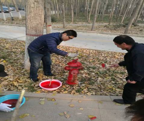对消防栓进行喷刷警示漆