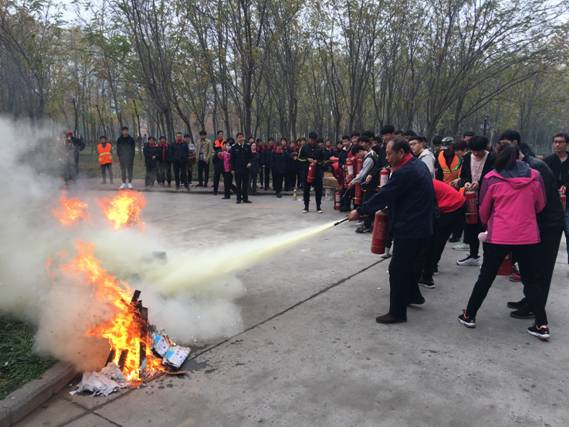 精心组织消防演练。为将所学知识运用到实际工作生活中,检验和提高广大师生灭火与逃生技能,保卫处先后组织了4次以模拟学生宿舍楼内失火为背景的灭火逃生演练。演练前制定了详细的活动计划,进行了周密安排部署,并对火灾逃生重点环节作了讲解和强调。演练中组织严密,师生忙中不乱,动作迅速,井然有序,达到了预期的目的和效果。