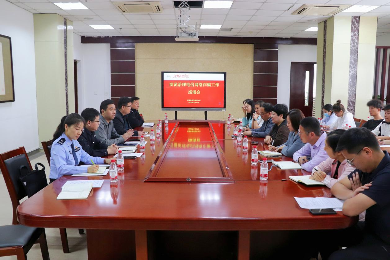 为进一步提升师生防范电信网络诈骗意识,深化校地协作联动机制,4月17日上午,红旗区委政法委、红旗分局反诈大队和我校相关部门师生在图书馆一楼会议室召开防范治理电信网络诈骗工作座谈会。