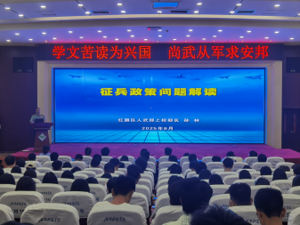 6 月 5 日下午,我校在办公楼308 报告厅举行2025年“征兵宣传月”启动仪式。红旗区武装部上校部长孙林、校武装部负责人出席活动,各学院毕业班辅导员及 300 余名学生代表参会。