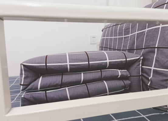 2022级学生军训工作正在如火如荼进行,内务卫生整理环节是军训的必修内容。从7月1日开始,教官按军训内务规定,亲自上阵,演示内务,并对学生寝室中被子的折叠、摆放的位置,生活用品的规范摆放,室内整体清洁的程度提出了严格要求。同学们按照要求,认真学习,主动作为。厚薄不一的被子变成了四四方方、棱角分明的“豆腐块”;桌面干净整洁,地面闪闪发亮;窗户、镜子亮堂起来,焕然一新。