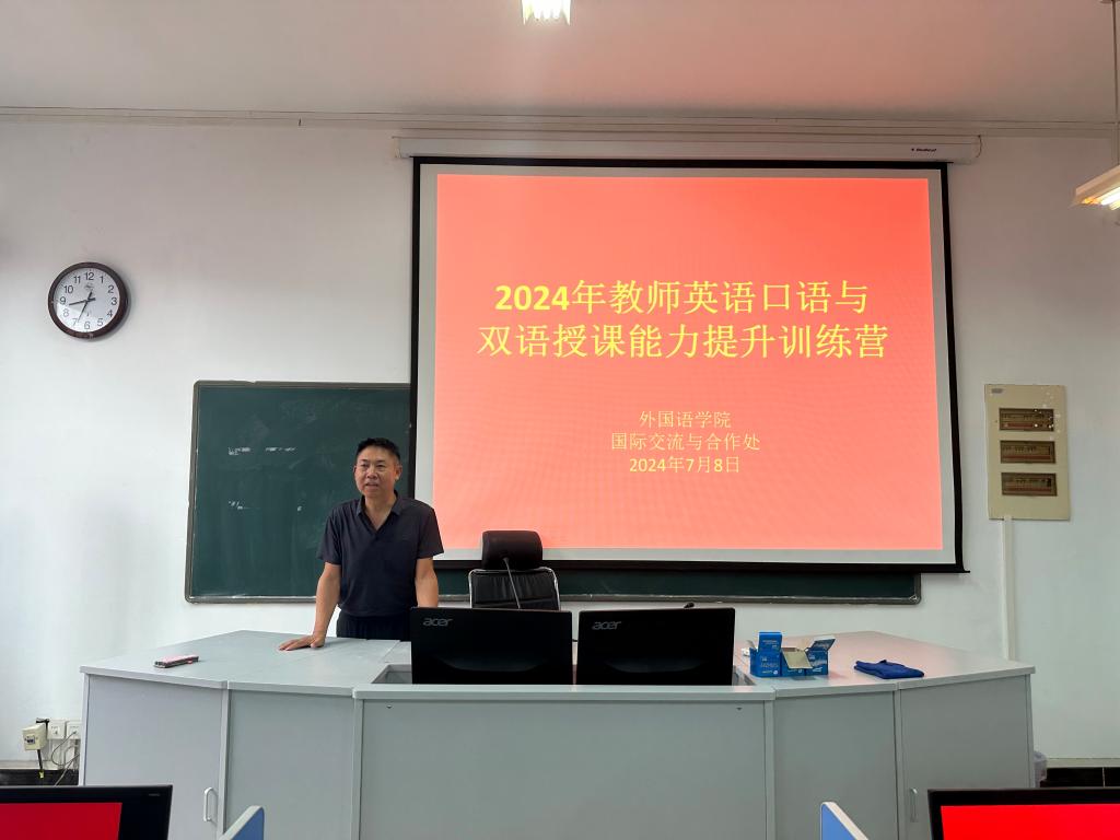7月8日上午,外国语学院和国际交流与合作处共同举办的教师英语口语与双语授课能力提升训练营开班仪式顺利举行。