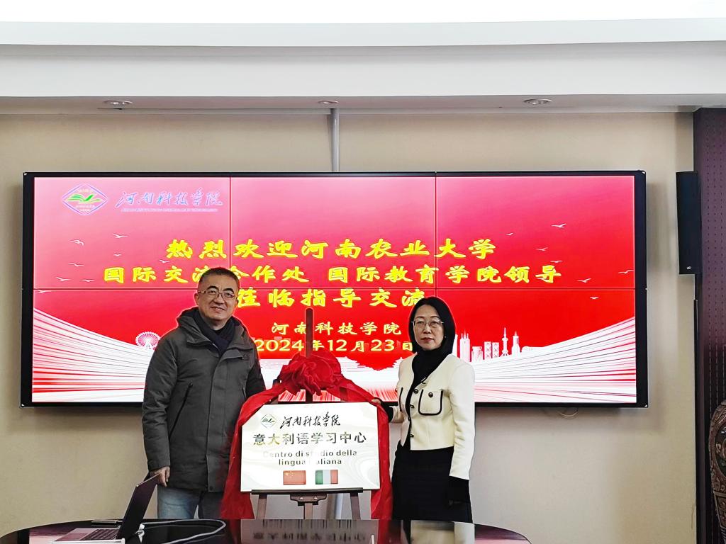 会上,冯霞代表河南科技学院意大利语学习中心,屠克代表河南农业大学意大利语中心,双方签订了《河南农业大学与河南科技学院意大利语意大利语培训项目合作协议》,并为河南科技学院意大利语学习中心揭牌。农大意语中心将为科院意语中心提供意大利语培训工作。根据意大利相关规定,获得意大利语相应等级证书在就读意大利公立高校时可以免去专业课程学费。同时,也为促进我校与意大利高校、科研院所之间的交流合作提供支持和帮助,促进我校师生赴意大利留学、访学及开展教学科研合作。