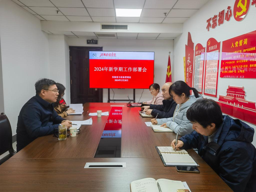 2月28日下午,实验室与设备管理处在办公楼1015办公室召开2024年新学期工作部署会。实验室与设备管理处全体人员参加了本次会议,会议由实验室与设备处处长李勇超主持。
