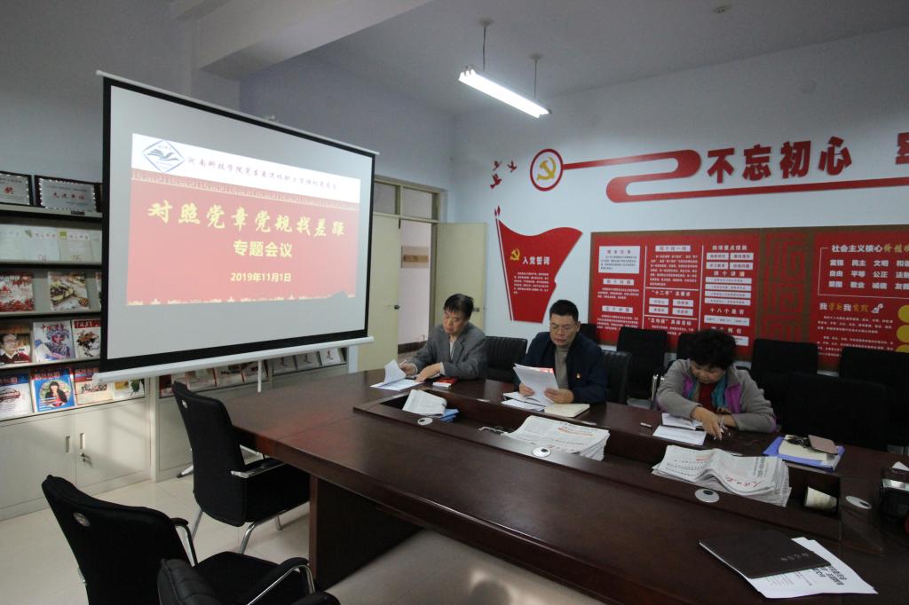 按照学校《“不忘初心、牢记使命”主题教育中对照党章、党规找差距的工作方案》的通知要求,离退处处级领导班子11月1日上午10点在一楼党员活动室召开“对照党章党规找差距”专题会议。会议由总支书记马新岭主持。