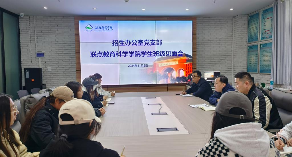 11月6日,招生办公室党支部与教育科学学院联点班级学生在科研楼B段1101会议室举行“开启沟通之门,助力梦想启航”见面会。招生办公室党员与联点班级学前241、学前242的主要学生干部参加,会议由招生办公室党支部副书记王渊主持。