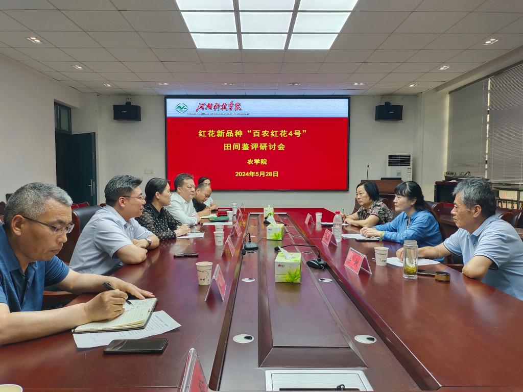 5月28日,省经济作物推广总站副站长于红卫、科长李炯、河南省中药材品种鉴定专业委员会专家孟丽一行3人莅临我校指导植物新品种“百农金银花3号”和“百农红花4号”现场鉴评工作。成果转化与合作办公室主任张慧辉、农学院党委书记于江傲、生命科学学院党委书记郭建勋和育种人参加鉴评会。