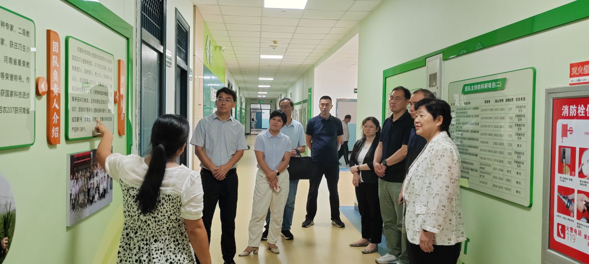 9月16日,新乡市政协教科卫体委主任裴竹梅、市科技局党组成员、副局长胡长义等一行到我校进行生物育种技术创新与产业化情况调研,成果转化与合作办公室副主任李勇峰陪同参加。