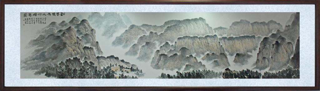 画作款识:群峰竞秀太行雄尊图,校运之兴,与太行精神通融,群英汇集,共铸黉门之大成,感念于此,写此图以抒怀。