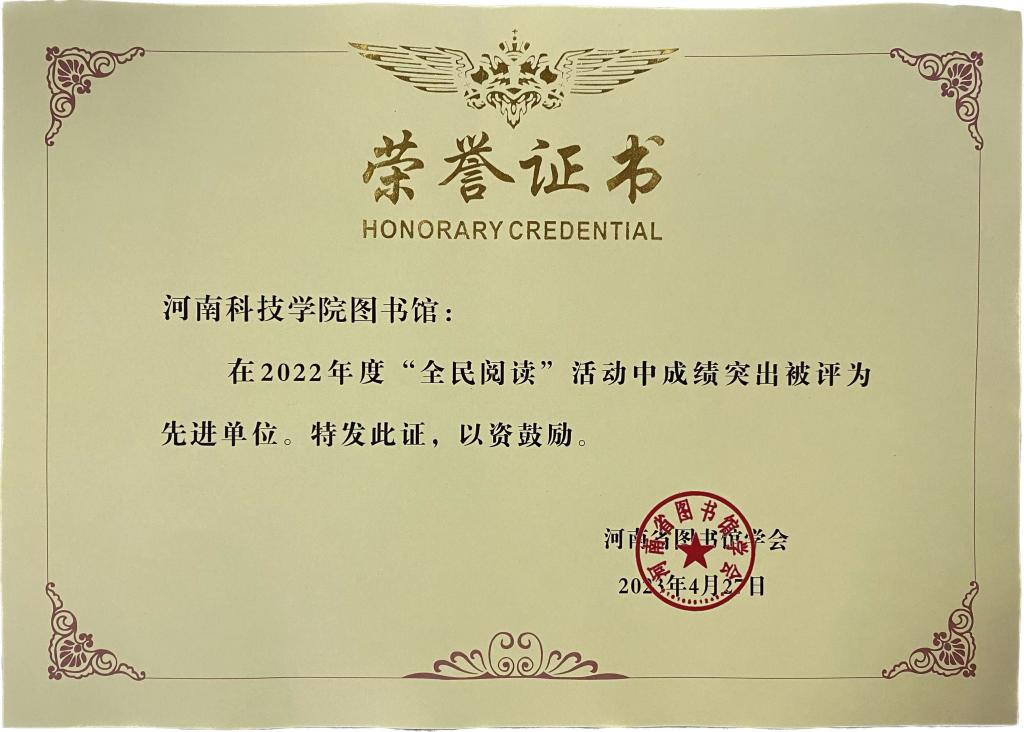 4月27日,在郑州召开的河南省图书馆学会第十届二次理事会议上,我校图书馆阅读推广工作再次受到表彰,被评为2022年度河南省“全民阅读”先进单位。