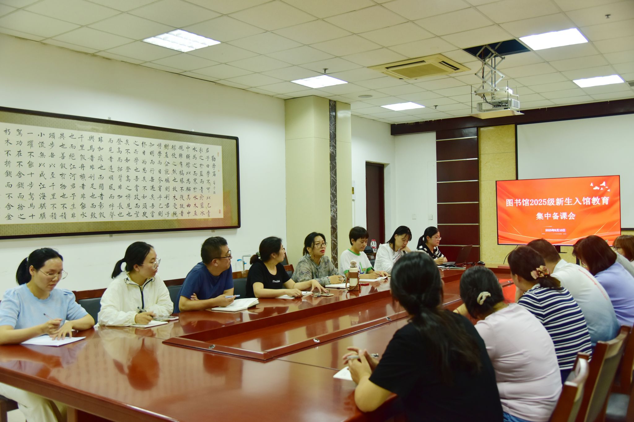 为进一步提升新生入馆教育工作实效,9月10日,图书馆在小会议室组织开展了2025级新生入馆教育集中备课活动。各部门培训教师参加本次活动,活动由副馆长郑树景主持,图书馆党总支书记高扬帆出席。