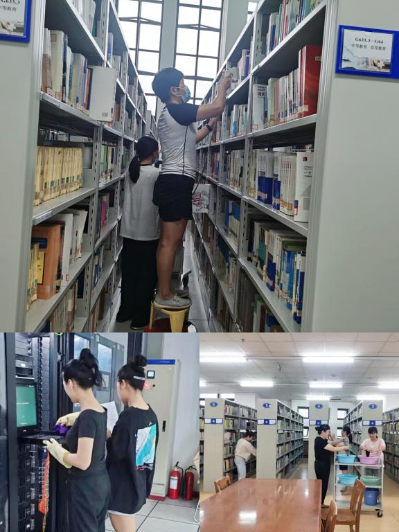 为优化图书馆馆藏空间布局,改善办馆条件,图书馆利用暑假的有利时机,集中开展二线书库建设、数字图书馆改造等一系列工作。原本安静的图书馆里,一群人战高温、斗酷暑,紧张有序地忙碌着,用汗水诠释着责任与敬业。