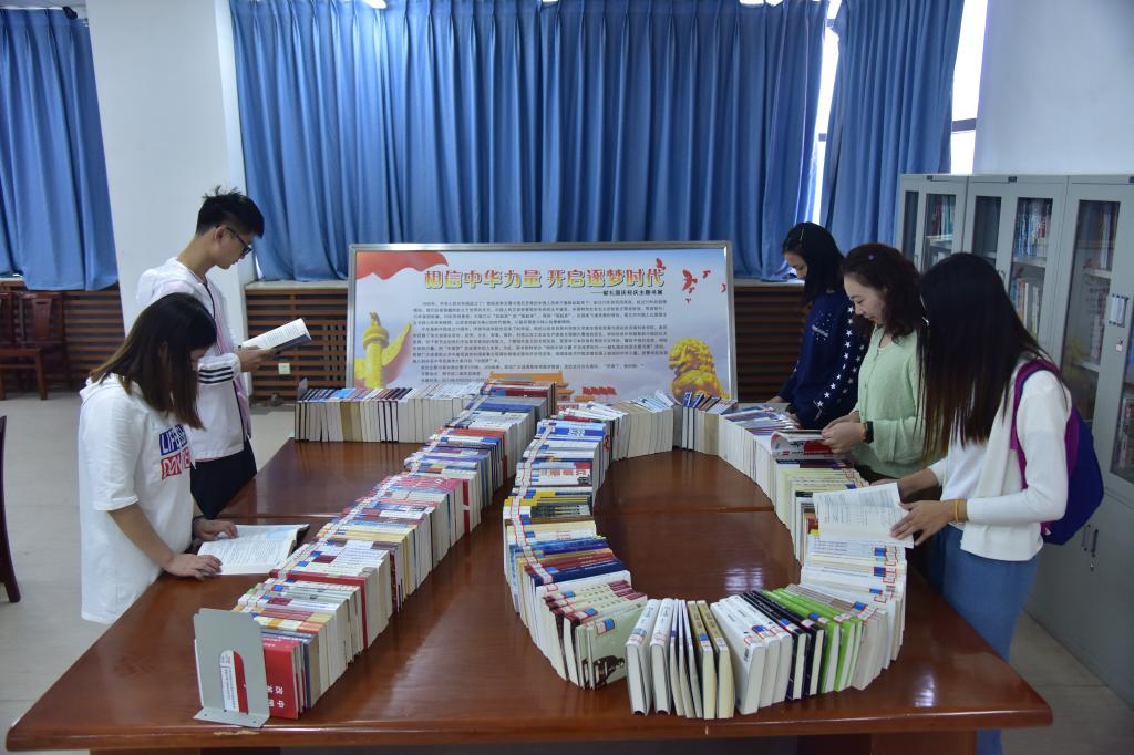 为庆祝中华人民共和国成立70周年,迎接河南科技学院80华诞,9月23日,图书馆在二楼东自修室举办了“相信中华力量 开启逐梦时代——献礼国庆校庆主题书展”活动。