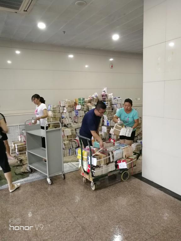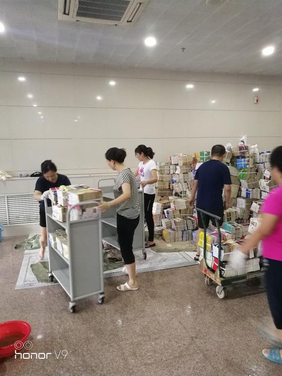 接到通知后,校内居住职工20余人第一时间到馆参加图书转移工作。在校外居住的成继福、史新伟、刘英杰等同志,因水深无法驾车,或骑车,或徒步,赶来参加抗洪自救工作。在大家共同努力下,仅用2个多小时完成了4万余册图书的紧急转移工作。