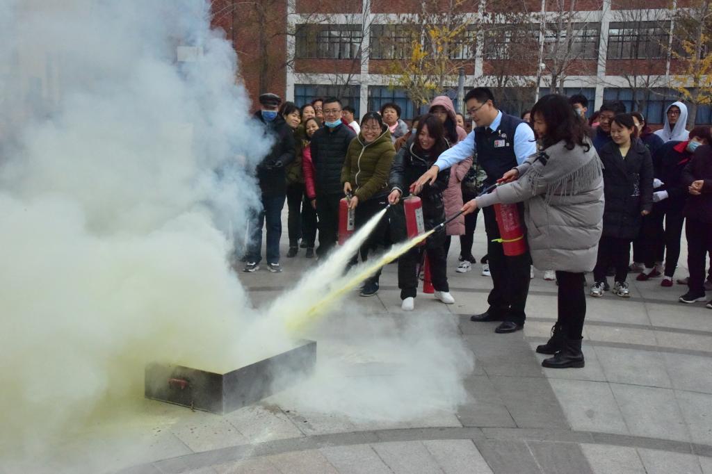 杜通教官给大家讲解并示范了干粉灭火器的正确使用方法,在消防科人员指导下,参训人员进行了灭火器实操,达到了人人会使用消防器材、人人会扑救初起火灾。