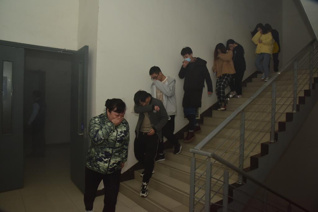 演习开始,随着四楼滚滚浓烟冒出,图书馆工作人员报警、启动火灾应急预案、组织初起火灾扑救、启动消防系统、放下防火卷帘、组织全部人员疏散等环节一一展开,整个演习紧张有序,全部人员按预案迅速撤离至安全区域。随后,保卫处副处长申万胜对演习进行了点评,他认为本次活动准备充分、组织严密,达到了预期效果,并再次提醒大家一定要高度重视消防安全工作,树立“消防无小事,消防人人有责”的思想,结合发生在身边的火灾事故,要求师生切勿麻痹大意,时刻做好防范工作。