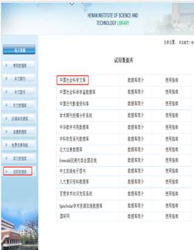 试用账号均为:hnkjxytsg(河南科技学院图书馆)密码同账号