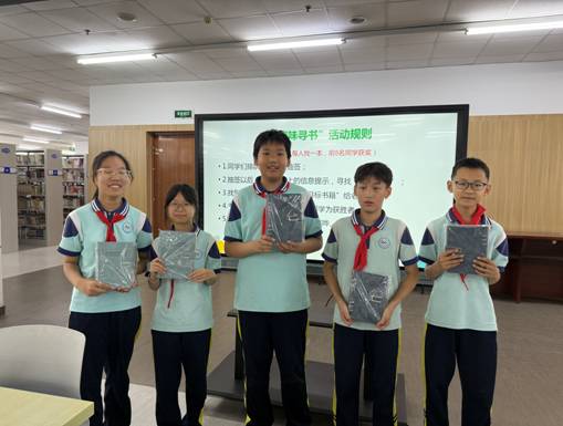 在“趣味寻书”环节,同学们在工作人员开始指令后,纷纷涌向图书区域,根据随机领取的索书号,通过书架导航标识,成功找到《战争与和平》《行走在历史中》等书籍。一位同学举着找到的书本兴奋地说道:“像解密游戏一样!”