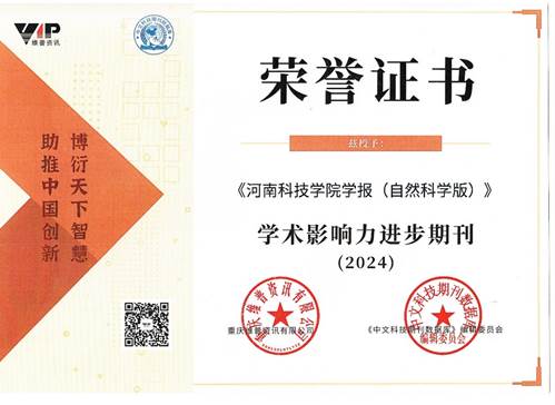 近日,维普《中文科技期刊数据库》正式公布了“学术影响力进步期刊(2024)”获奖名单,《河南科技学院学报(自然科学版)》获此殊荣。该荣誉的取得标志着学报自科版的学术影响力得到显著提升。