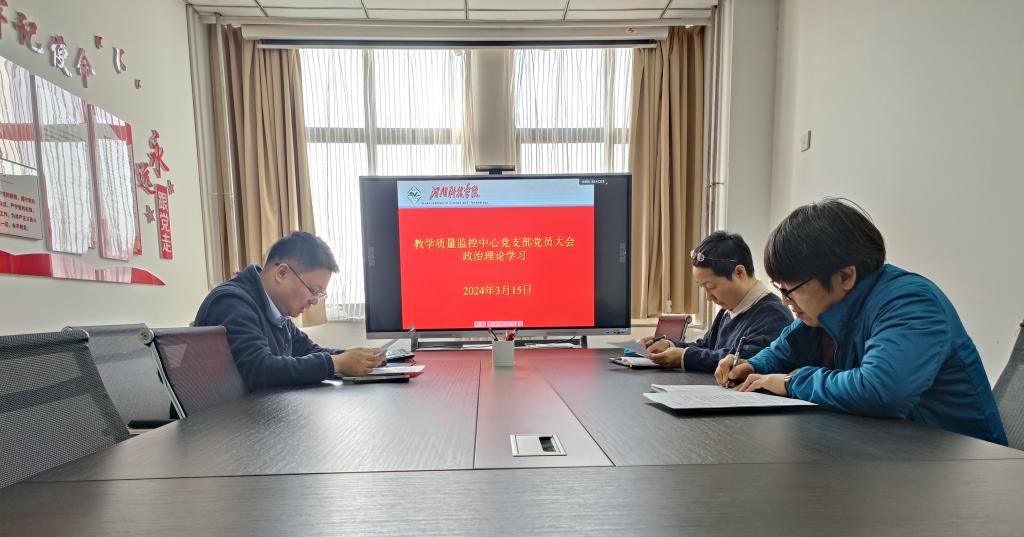 3月15日,教学质量监控中心党支部在办公楼412会议室召开党员大会,学习习近平总书记在两会期间的重要讲话精神和全国两会精神,会议由支部书记主持。