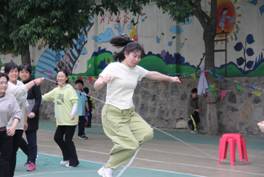 本次运动会以传统项目为主,设有个人和团体项目,一分钟踢毽跳绳、两分钟“8”字跳大绳、两分钟多人跳大绳、两人三足(三人四足)接力赛、抱球跑以及拔河等项目。比赛过程中,运动员们个个精神饱满、斗志昂扬,奋力拼搏、勇争第一,拉拉队员们不断为队友呐喊助威。一声声此起彼伏的欢呼声、喝彩声、加油声不绝于耳。跳大绳、接力跑、拔河比赛等项目各具特色,老师们集体跳绳和抱球跑把整个运动会推向了高潮。运动员们在运动场上体验着竞争、快乐、协作的体育精神,赛出了水平,赛出了风格,赛出了友谊。