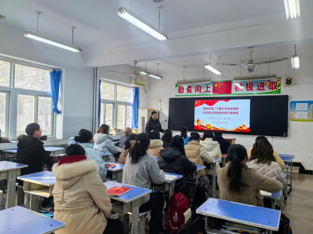 入队仪式结束后,后勤服务中心党委书记龚俊朋上了题为《准确把握党的二十届三中全会精神,办好家长满意的附属子弟学校》的专题党课。他从“深刻认识重大意义,牢牢把握全会丰富内涵”“准确领会重大部署,把握教育改革发展方向”“深入贯彻全会精神,落实立德树人根本任务”三个方面讲述了党的二十届三中全会的重要意义、主要内容和精神实质出发,深入阐述了坚持全面深化改革、推进中国式现代化建设的必要性和重要性。党课内容既有理论高度,又有实践指导意义,与会党员深受启发,纷纷表示将在工作中践行全会精神,以实际行动为学校和后勤服务中心的高质量发展贡献力量。