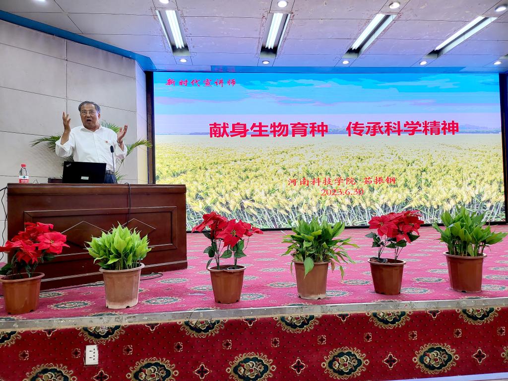 报告会上,茹振钢以《献身生物育种 传承科学精神》为题,结合自身成长经历,从初心萌发、搏击人生、牢记使命和家国情缘四个方面,讲述了自己如何和“小麦”结缘、如何将个人梦想和国家前途相结合,最终取得一番作为的经历。茹教授语言风趣幽默,台下不时响起阵阵热烈的掌声。