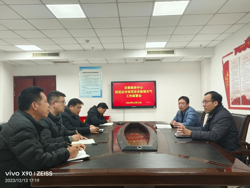 12月13日下午,后勤服务中心在办公楼205会议室召开防范应对雨雪冰冻极端天气工作部署会。全体班子成员和部分科级干部参加会议。会议由后勤服务中心主任王吉田主持。
