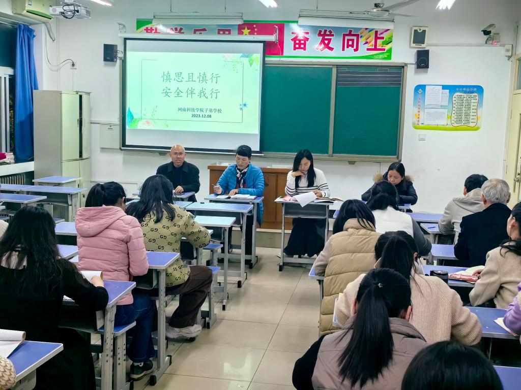 为普及安全知识、增强安全意识,切实提高师生防范安全事故能力,12月8日下午,子弟学校以“慎思且慎行、安全伴我行”为主题在三一班教室召开全体教师会议。