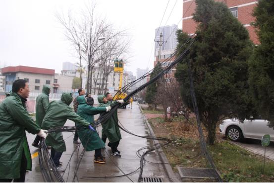 经过两周综合治理,12月3日-5日,后勤服务中心组织10余名工作人员开展网线整理,施工人员冒着零下5度的雨雪严寒天气,共拆除旧光缆30余条,共计3000余米。期间,保卫处处长刘明鹏、后勤服务中心主任冀红举亲临现场指导拆除工作,并不时叮嘱施工人员注意安全。经过三天的努力,线路遗留问题整改工作现已完成,进一步消除安全隐患,校园环境得到了改善。(后勤服务中心 宋鹏辉)