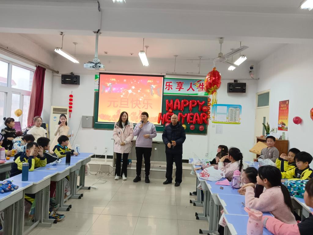 子弟学校校长郭斐杰、副校长李广州、赵文静高度重视此次活动,不仅精心筹备,还到各个班级为孩子们送上新年祝福,祝孩子们元旦快乐、学习进步、阖家欢乐。