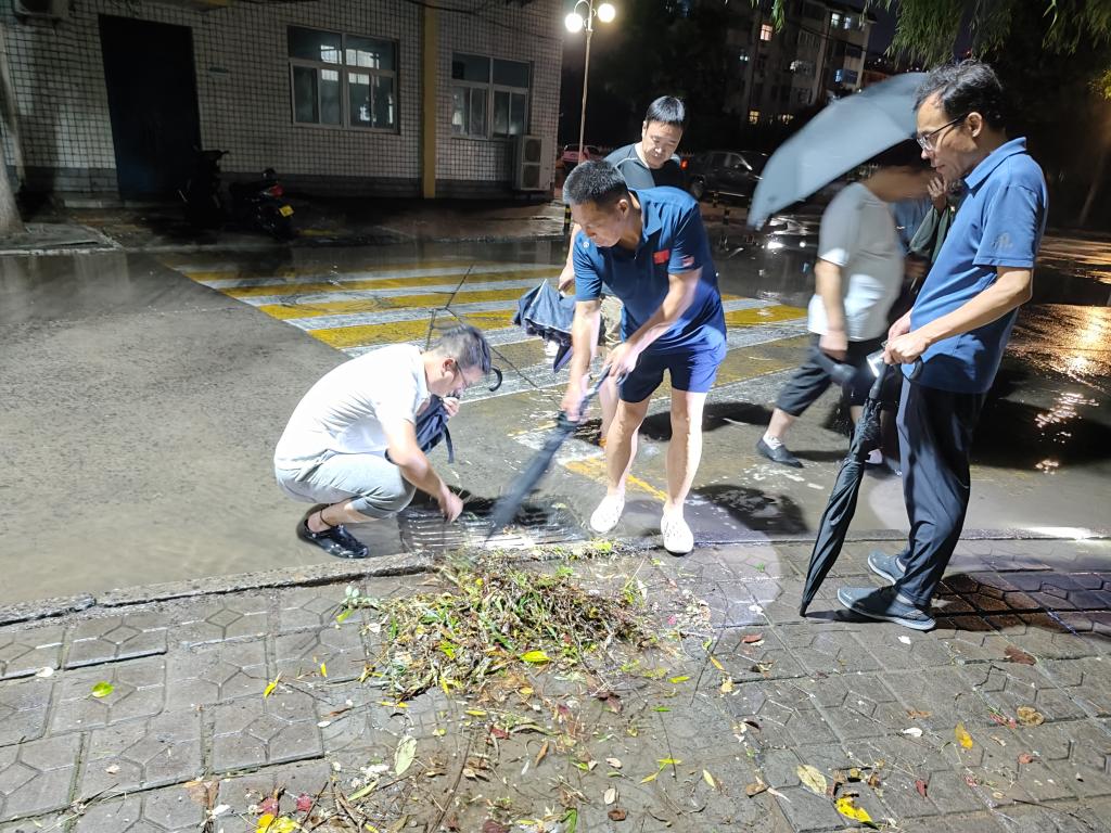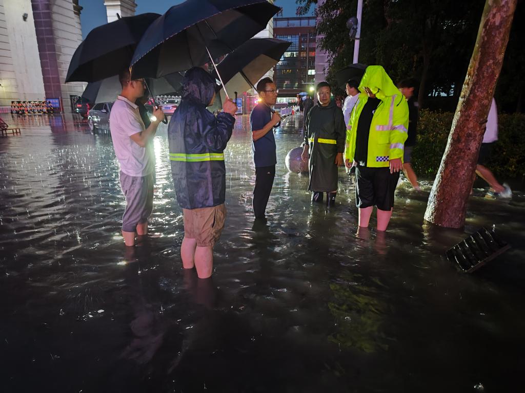 7月22日傍晚,在强降雨过程中,后勤服务中心全体领导班子成员带领防汛队员深入校园各个关键部位实地巡查,积极采取措施排水、除险,努力确保校园安全。
