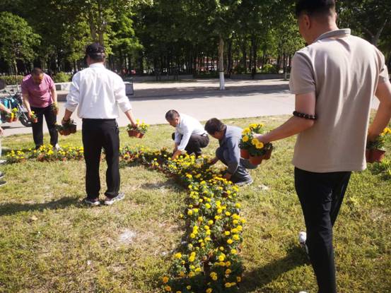 为巩固拓展学校文明创建成果,5月18日上午,后勤服务中心第三党支部组织全体党员和物业服务人员开展“美化校园,党员先行”主题党日活动。活动中,大家集体研究确定校园美化方案,在烈日炎炎下争先恐后地搬运、摆放花卉,打扫环境卫生。手被磨破了,衣服被汗水浸湿了,但大家依然保持着高涨的热情,高质量地完成了各项工作任务。