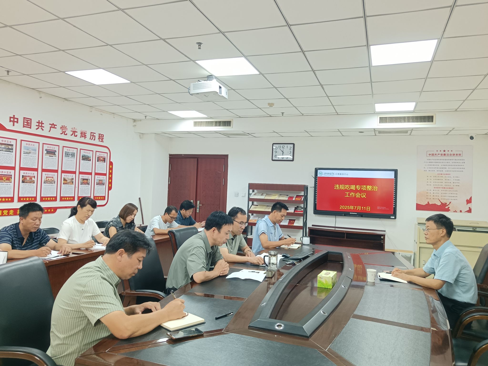 为持续推动深入贯彻中央八项规定精神学习教育走深走实,坚决刹住违规吃喝歪风,把严的基调、严的氛围、严的要求传导到基层。7月11日上午,副校长王洪亮到后勤服务中心调研违规吃喝专项整治工作。后勤服务中心班子成员、各科室负责人参加调研会,会议由后勤服务中心负责人主持。