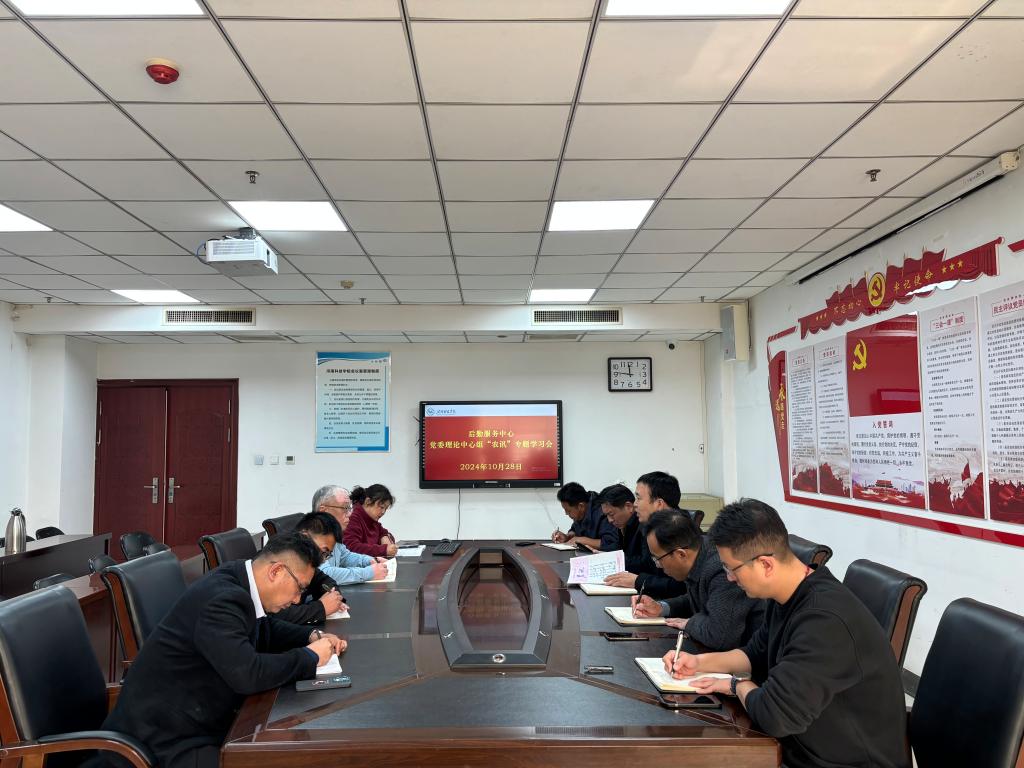10月28日上午,后勤服务中心在办公楼205会议室召开《农讯》专题学习会,全体班子成员和部分科室负责人参加了会议。学习会由后勤服务中心党委书记龚俊朋主持。