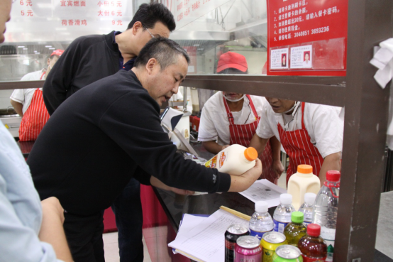 检查组一行每到一处,都要对员工培训及记录、安全卫生层级管理办法、停电停水停气应急预案、食品安全突发事件和食物中毒应急处置预案、制度上墙情况、从业人员健康证办理情况、消防设施、食品添加剂使用及管理要点、餐具清洗消毒,以及食堂环境、操作间环境卫生、食品留样及记录、防四害措施、设备安全运行、污水排放设施及处理等15个方面进行全面细致地检查,并详细询问工作人员饭菜价格、分量,听取相关意见和建议。