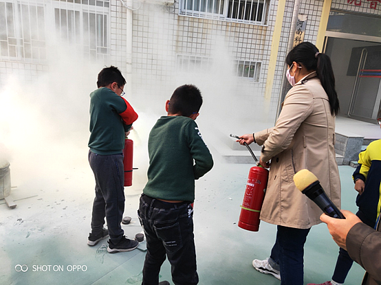 师生共同练习使用灭火器