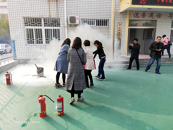 教师使用灭火器进行灭火演练