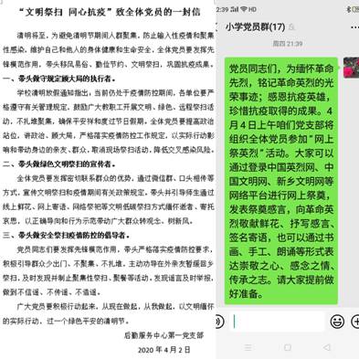 第五党总支书记乔有职感言,“网上祭英烈”低碳环保,是对英雄和逝者的深切告慰。烈士们舍小我为大我,以生命践行使命,用大爱护佑苍生,他们是新时代最可爱的人,他们的崇高精神永垂不朽!各位党员同志要在灾难中奋起,在哀思中前行,夺取抗击疫情的最终胜利。