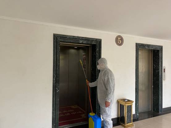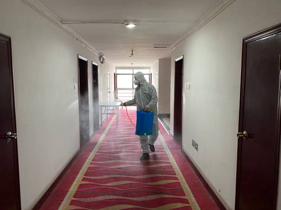 六、科院“方舱”诞生记。面对来势汹汹的疫情,在接到学校疫情防控小组的通知,要求在最短时间内将学术交流中心改造成集中隔离点,完善隔离场所环境的任务后,中心联合保卫处以最快的速度完成改造并投入使用。因隔离观察区的环境卫生要求高,中心再次组织专业消杀人员进行精细化保洁,坚决地做到以我所能、竭尽全力。
