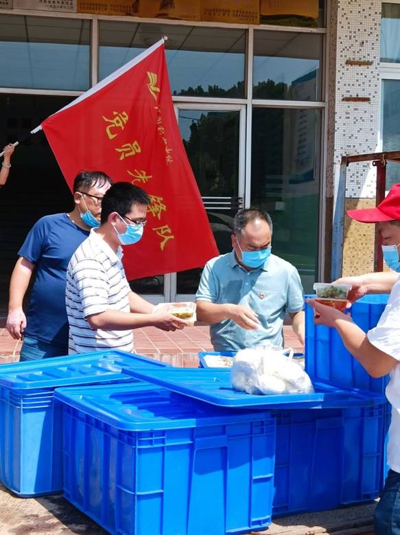 活动中,党支部全体党员在后勤服务中心第四党支部书记魏军鹏、主管副主任刘晓杰带领下分工合作,积极投入,顶着烈日搬运一盒盒干净卫生、美味的饭菜。汗水浸透了衣服,手上压出了勒痕,但看到工作在抗疫复学一线的师生们吃到可口饭菜时的笑容,每位参加活动的党员都很高兴。