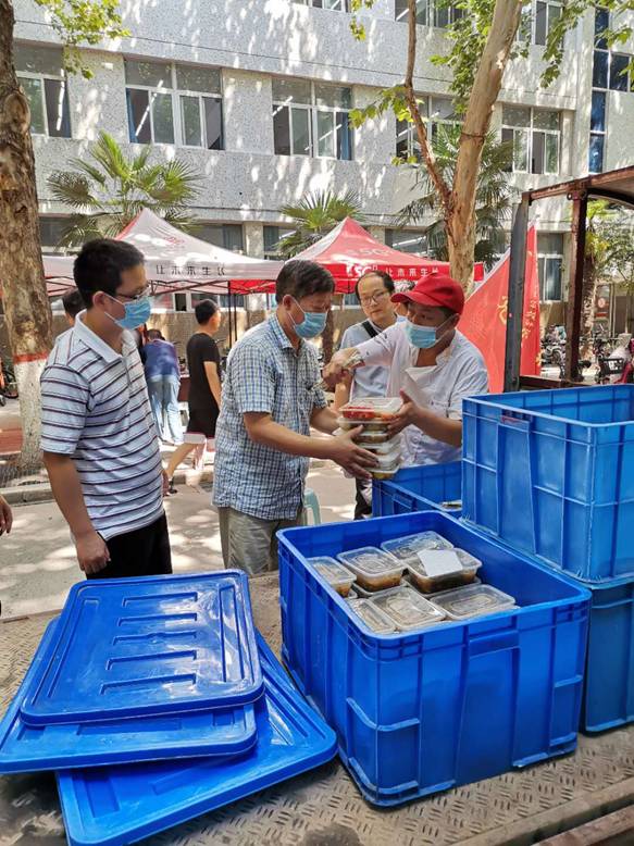 后勤服务中心党员干部为坚守在抗疫复学一线的师生发放饭菜