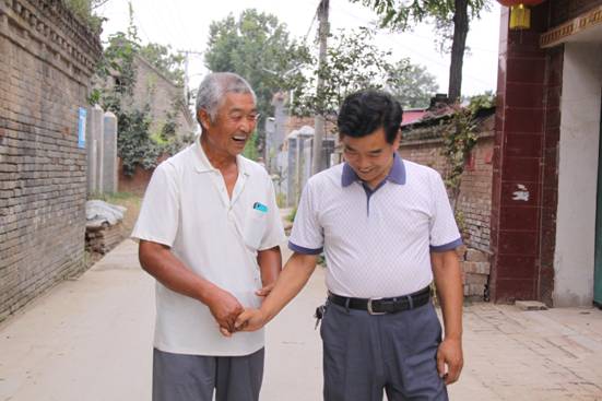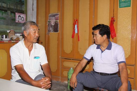 第五党总支书记乔有职和帮扶对象董立河老人交谈