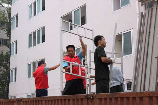 得知结对帮扶的卫辉市纸坊村受灾严重,群众居住急需床铺的消息后,后勤服务中心快速动员党员、干部,到5号学生公寓楼集合开展主题党日活动。从早上6点半开始,到上午11点半结束,历时5个小时,大家齐心协力完成了300余套上下铺学生床、满满3大卡车的装车任务。装车过程中,不少人的手被磨破了,脚被砸伤了,但大家没有人抱怨,没有人中途退出。大家只想着尽快把床铺运送到卫辉老乡的家里,帮助老乡们渡过难关、重建家园。