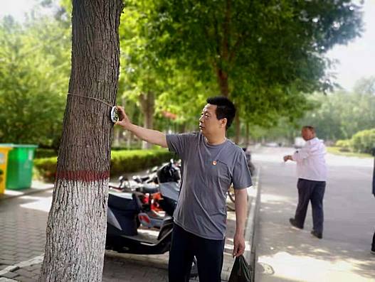 此次活动选择白蜡、银杏、乌桕、重阳木等树种树牌60个,树牌内容包括树木名称、科属及二维码等。活动开始后,每位党员认真学习固定树牌方法,积极学习树木相关知识确保树牌不挂混,亲手为树木挂上它的“身份证”。